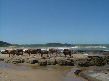 Tim's dogs racing around in the surf to be confronted with a herd of cows on the beach!! Hmmm never seen that before!! The herdsman was taking shelter in the trees nearby and the cows we guessed,